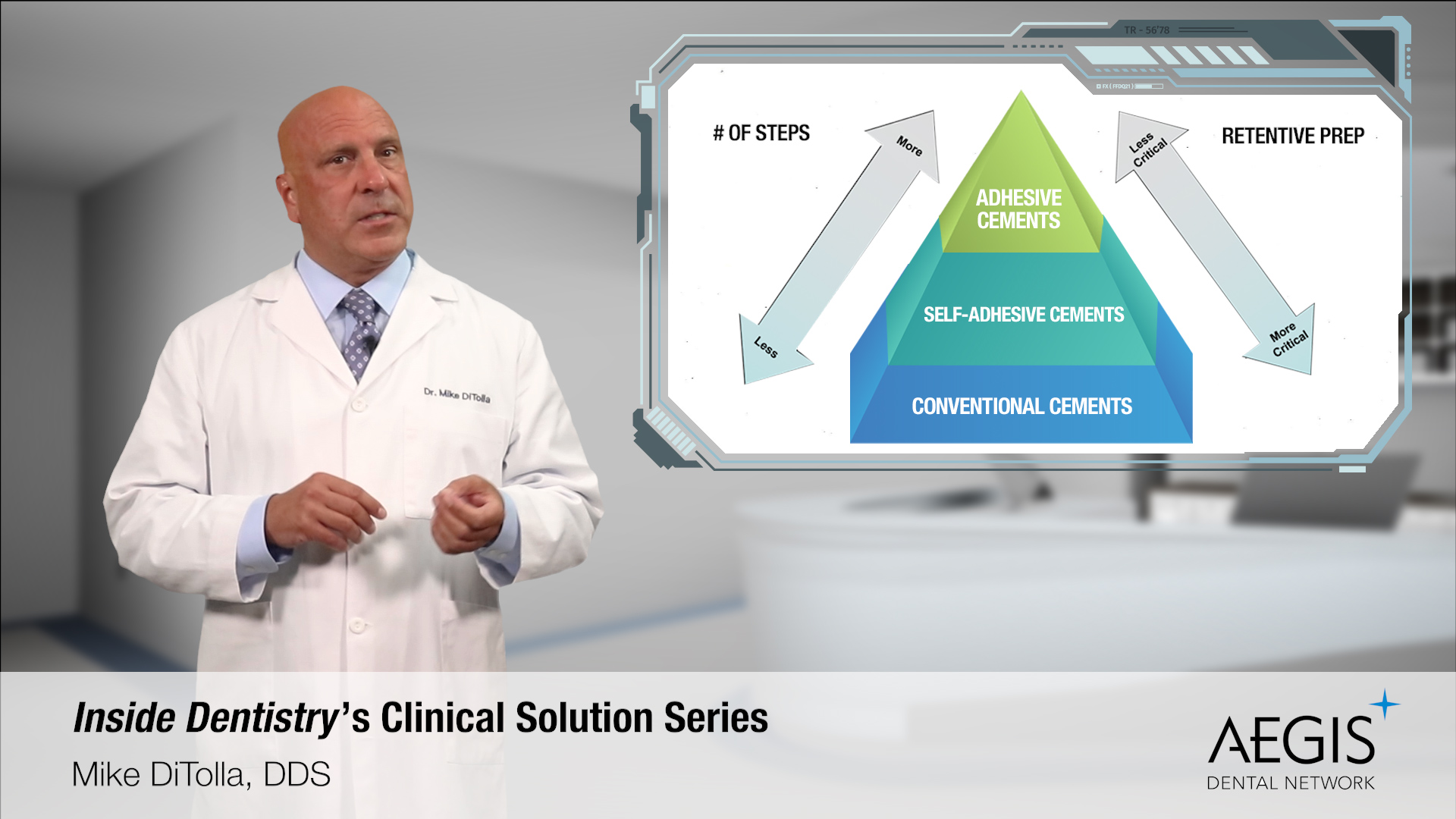 A 1988 graduate of University of the Pacific Arthur A. Dugoni School of Dentistry, Dr. DiTolla was awarded his Fellowship in the AGD in 1995. Mike was in private practice for 15 years before becoming Director of Clinical Education for Glidewell Labs for the next 15 years, giving him an intimate knowledge of American dentists and their crown and bridge habits. In 2011 he received the "Most Effective Dentist Educator" award in a nationwide survey of dentists. In 2014 and 2015 he lectured on behalf of CR, presenting their iconic "Dentistry Update" lectures, the longest running CE program in dentistry. In 2015 he became Director of Clinical Affairs for Sirona and in 2018 he became the VP of Clinical Affairs and Communication for AEGIS Dental Network.