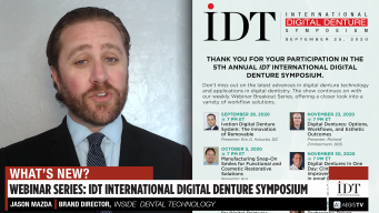 Updates on the IDT International Digital Denture Symposium and Alexander Wunsche, plus a CE article on laboratory labeling of removable appliances and an on-demand webinar on digital dentures.