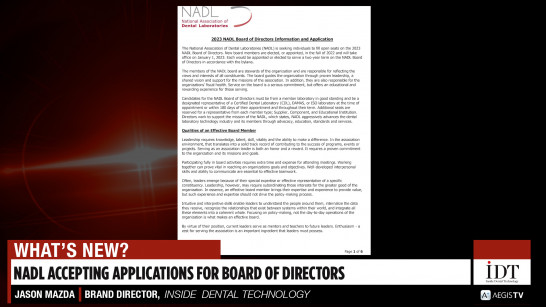 Welcome to IDT Weekly! I’m Jason Mazda, and here’s what’s new. Zest announced a 3-year agreement with Aspen Dental to be the DSO’s preferred dental partner for LOCATOR, LOCATOR R-Tx, and LOCATOR Overdenture Implant Solutions. In addition to local office support, Zest will partner with the clinical support team to launch the first Removable Overdenture Initiative with surgical, prosthetic, and hands-on training programs being hosted both in-person and remotely. Roland launched a completely redesigned online store with a new look, more intuitive navigation, and a faster, simpler purchasing and checkout process. Roland senior product manager Lily Hunter says it’s essentially a brand-new e-commerce platform, and that they’re confident users will immediately appreciate the improvements. Check it out at dgastore.rolanddga.com. VHF announced a new partnership with Proto3000, a specialist in digital dental workflow products and services. VHF CEO Mohamed Sulaiman says Proto3000 is a one-stop shop for dental laboratories, and that VHF machines complement the portfolio very well. Proto3000 president and co-founder Eyal Geiger says they’re excited because VHF’s mills allow dental technicians to take their processes to the next level. This month in IDT, our CE article is a review of intraoral scanners on the market. Dr. Ahmad Al-Hassiny has used a number of different scanners at his Institute of Digital Dentistry in New Zealand, and he shares what the most important differences among the various options are, from accuracy to speed and software considerations. Read the article and take the quiz for 1 CE credit at idt.cdeworld.com, or for that and other links mentioned in this episode, see the description below. Well, that’s it for this week. Thank you, as always, for making IDT your source for the latest in dental laboratory technology.